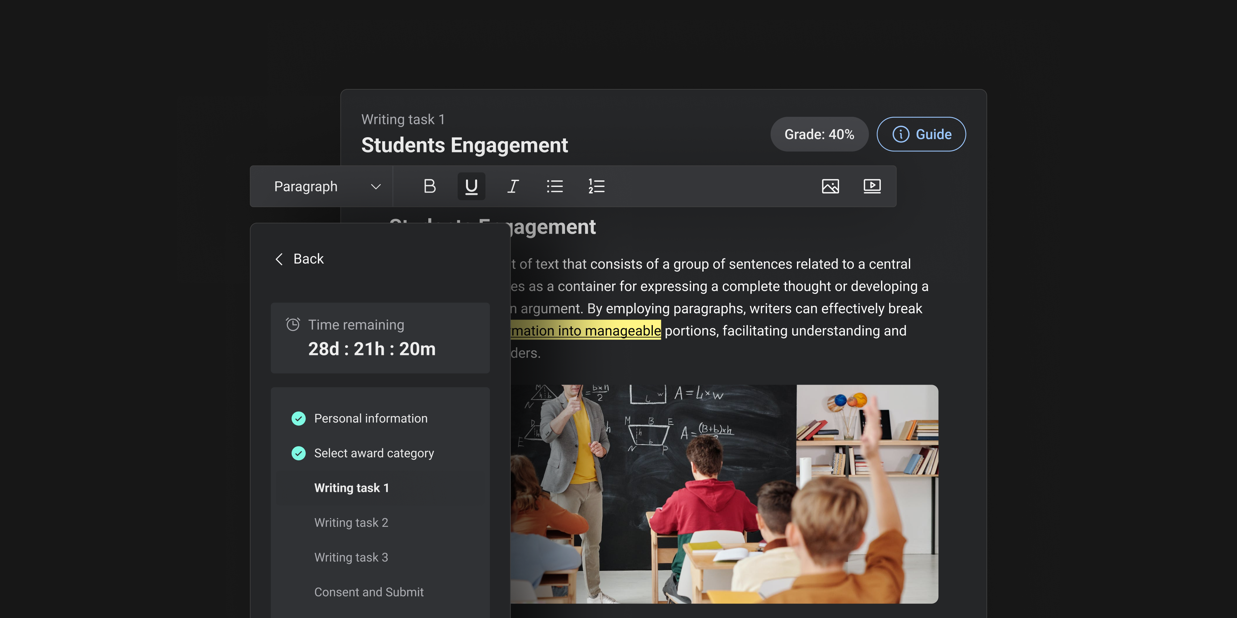 The application form was key to increasing submissions, so we simplified data entry, added media support, and conducted usability sessions to ensure the application process was easy to use.